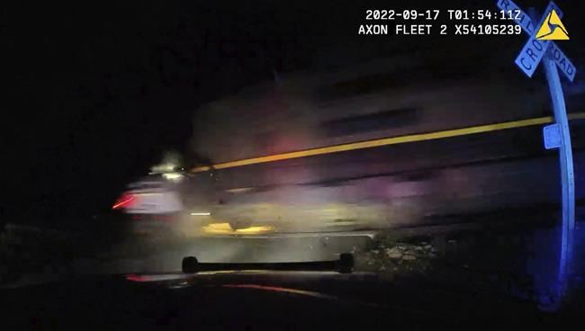 Officer who put woman in police car hit by train didn’t know it was on the tracks, defense says