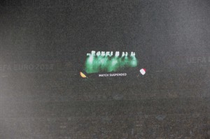 Euro 2012 match between Ukraine, France briefly suspended because of thunderstorm in Donetsk