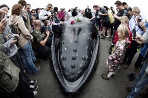 VANCOUVER – A whale, believed to be a humpback, has washed up on White Rock beach, south of Vancouver.