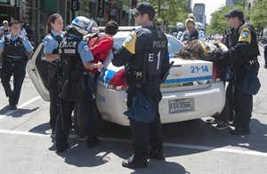 MONTREAL – Montreal police are being accused of political profiling — of searching and detaining people wearing the red square, the symbol of Quebec’s protest movement.