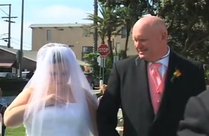 Don't you hate it when you're talking to someone and they pull out their smart phone? I didn't hear a ring, so she must have her cell phone set to vibrate. This groom doesn't look impressed. He should maybe take the advice of the sign in the background. %%video1%%