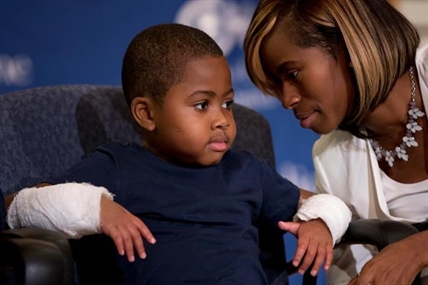 PHILADELPHIA – An eight-year-old Baltimore boy who lost his limbs to a serious infection has become the youngest patient to receive a double-hand transplant, surgeons said Tuesday.