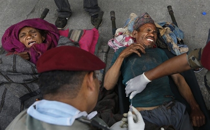 GUMDA, Nepal – Hands pressed together in supplication, the Nepalese women pleaded for food, shelter and anything else the helicopter might have brought on an in-and-out run Wednesday to this smashed mountain village near the epicenter of last weekend's mammoth earthquake that killed more than 5,000 people.