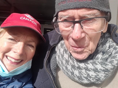 VANCOUVER – A plastic barrier sits on a table between Debbie Drew and her father…