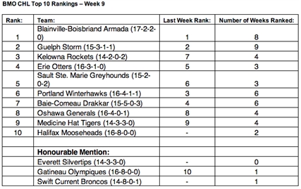 THREE WHL CLUBS IN BMO CHL TOP 10 RANKINGS Kelowna Rockets, Portland Winterhawks, Medicine Hat Tigers. TORONTO – The Canadian Hockey League today announced the ninth edition of the BMO CHL Top 10 Rankings for the 2013-14 regular season. The weekly rankings of the Canadian Hockey League’s Top 10 teams are selected by a panel...