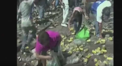 In Mexico, a beer truck was in an accident. It flipped over and spilt its…
