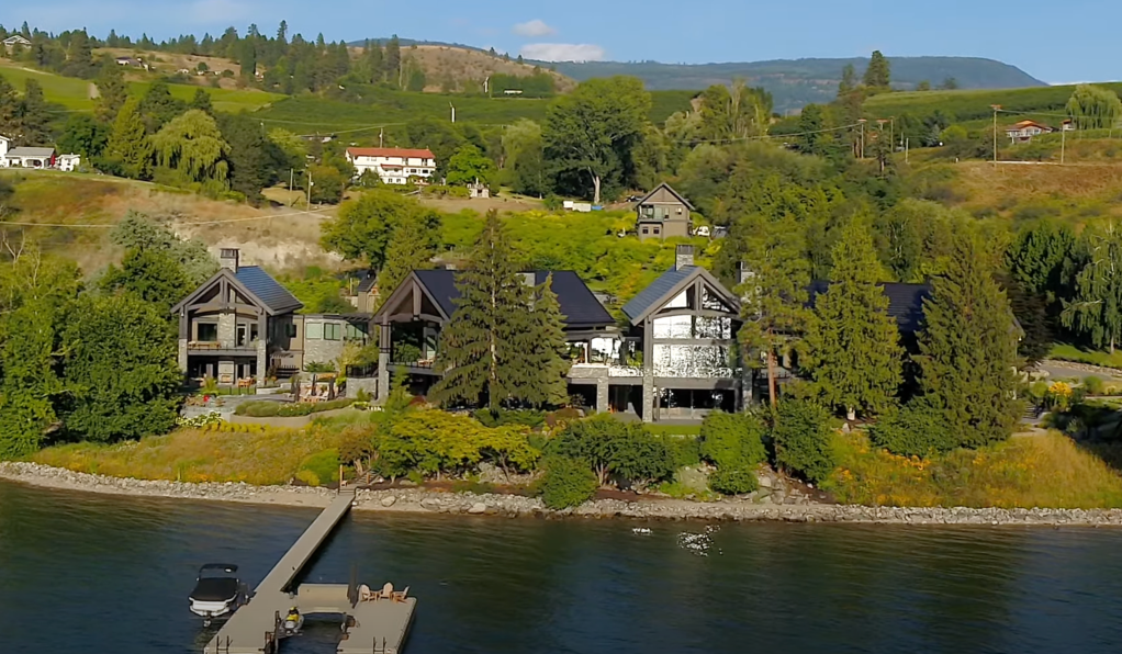 The $55-million asking price in January 2021 has now dropped to $45,880,000 for a home currently assessed at $7.8 million. It sprawls over 20,306 sq. ft. with a 4,163 sq. ft. guest wing and a 1,820 sq. ft. caretaker's residence, five bedrooms and 12 bathrooms on five acres along Okanagan Lake.
