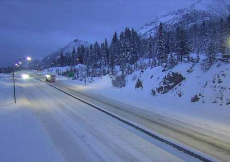 The Coquihalla Highway from Merritt to Kamloops is expected to get 2-4 cm of snow today and again on Wednesday while the Okanagan Connecter is could get 5 cm starting after midnight tonight and another 5-10 cm tomorrow.