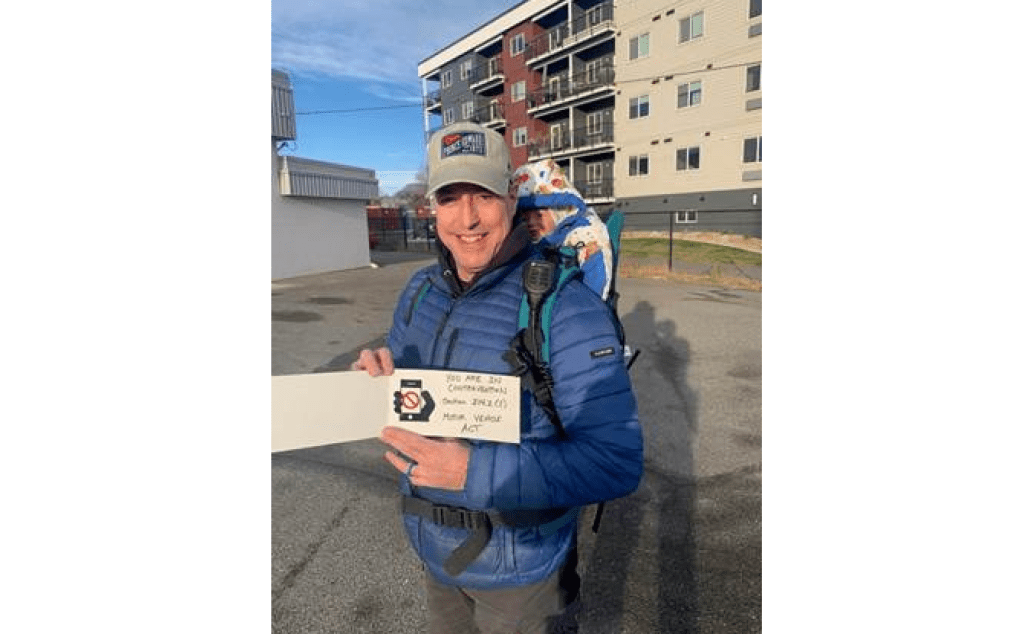Kamloops cop with baby carrier sneakily nabs drivers using cell phones