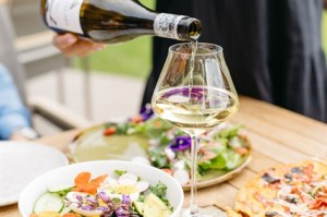 For anybody interested in pairing his creations with the wine from Back Door, he recommends a slice of the “Sweet Ride” Roman-style street pizza – topped with pesto, caramelized onions, brie, and ripe pear – to be enjoyed with a hot-weather wine, like a bubbly rosé.