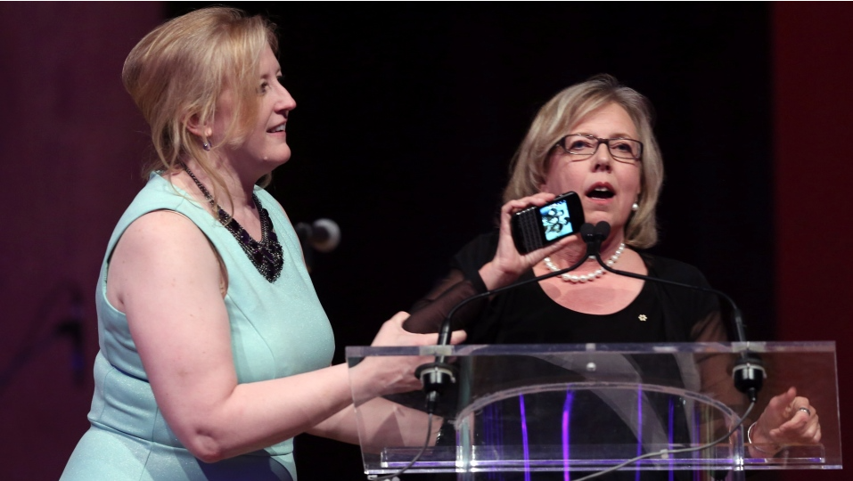 May said she was just getting over the flu, had put in a 21-hour work day on Friday, and then had to rise early in British Columbia on Saturday morning to make it to the press gallery event in Gatineau, Que.