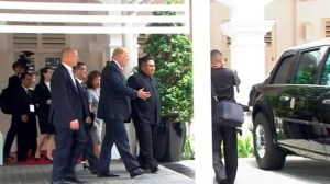 As the two leaders strolled around the grounds of the Singapore resort where they’re having their summit Tuesday, they walked up to the U.S. limousine nicknamed The Beast.