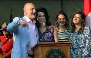 Two volunteer firefighters on Wednesday climbed the 60-meter (197-foot) monument towering above the northeastern Spanish city and placed the vest with the words “Open Arms” on the statue.