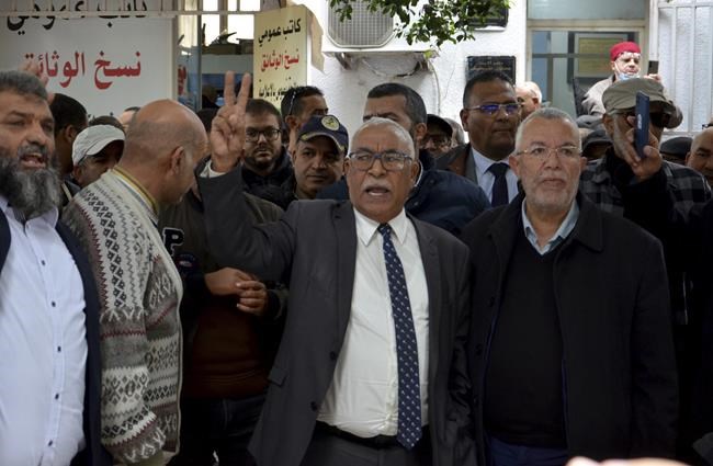 TUNIS, Tunisia (AP) — Supporters of the Tunisian Islamist movement Ennahda demonstrated on Friday in front of the Justice Ministry in the capital to denounce the arrest of one of its senior leaders, suspected of being involved in sending Tunisians to fight with extremists in Syria.