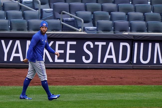 Blue Jays general manager Ross Atkins says injured outfielder George Springer is day-to-day with a strained left oblique muscle and could be available when Toronto plays its first game at its temporary home in Dunedin, Florida.