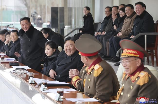 Photos published by North Korea’s official Rodong Sinmun newspaper showed Kim and his daughter smiling and clapping from the VIP seats, where they sat in the center between senior government and military officials. Kim Yo Jong, Kim’s sister and one of his top foreign policy officials, was seen sitting in a row behind them.