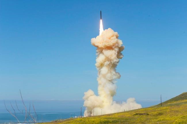 WASHINGTON – In the first test of its kind, the Pentagon on Monday carried out a “salvo” intercept of an unarmed missile soaring over the Pacific, using two interceptor missiles launched from underground silos in southern California.