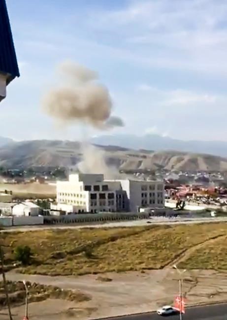 Kyrgyzstan’s interior ministry described it as a terrorist attack. Deputy Prime Minister Zhenish Razakov told the Interfax news agency it was a suicide bombing.