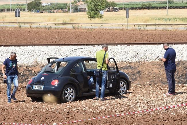 Video of the scene shot by ANSA shows a black VW Beetle on the side of the road with its rear window shot out and a body strewn on the ground nearby. The shooting happened near an abandoned train station in the town of San Marco in Lamis in the Foggia Province.