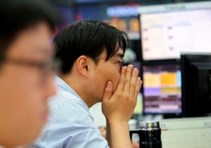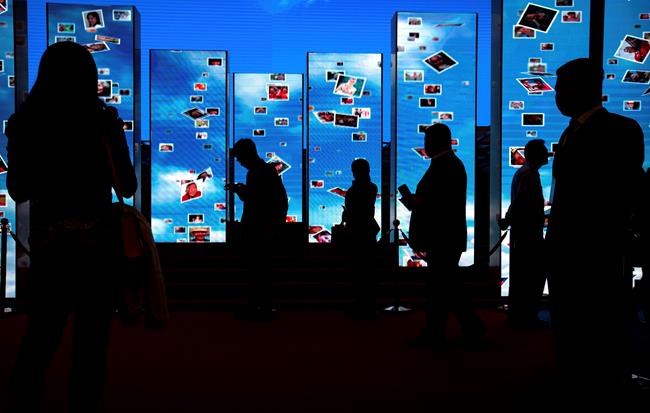 In this photo by Associated Press photographer Mark Schiefelbein, visitors walk past video display boards at an exhibition highlighting China’s achievements during five years of leadership by Chinese President Xi Jinping.