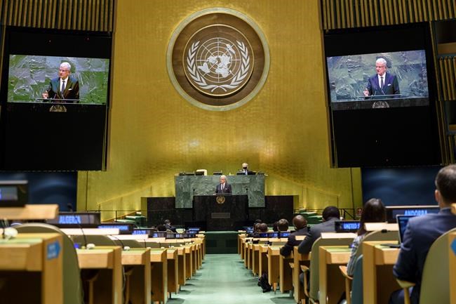 While all the leaders delivered prerecorded speeches, the diplomats late Tuesday spoke in person, seated behind their country’s nameplate in the vast General Assembly Hall where virus restrictions meant only one representative of each of the 193 U.N. member nations was allowed.