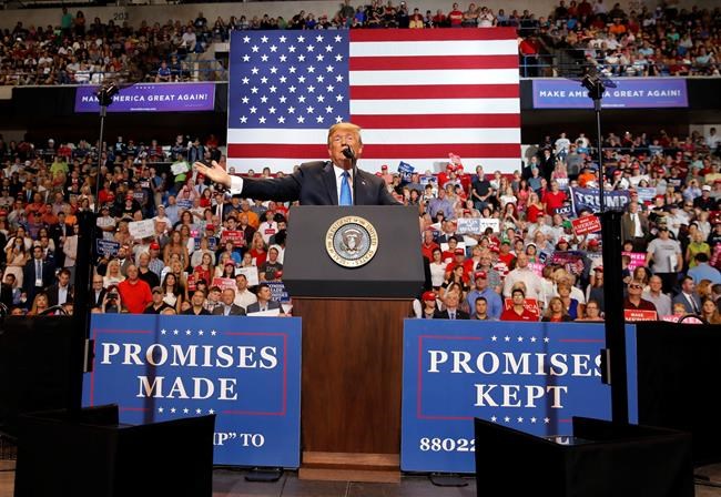 Trump told a rally crowd in Wilkes-Barre (WILKS’-ba-ree), Pennsylvania, on Thursday that the media refuses to give him credit for a long list of accomplishments, including his summits with North Korean leader Kim Jong Un and Russia’s Vladimir Putin.