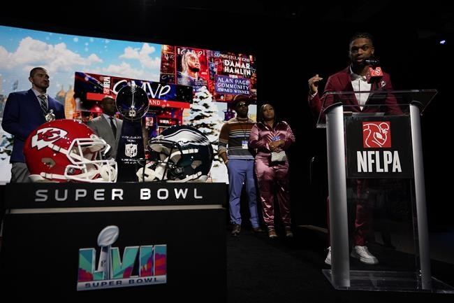 PHOENIX (AP) — Damar Hamlin made a brief appearance in Phoenix during Super Bowl week to receive the NFLPA’s Alan Page Community Award.
