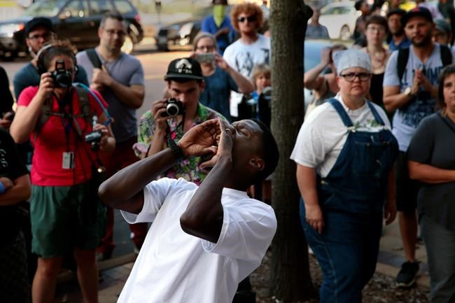 On Sunday, a much smaller group of protesters stood outside a hotel near Lambert Airport, where a conservative group was hosting a rally that included Steve Bannon, the former chief strategist to President Donald Trump.