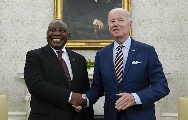 WASHINGTON (AP) — President Joe Biden praised South Africa as a vital voice on the global stage as he hosted President Cyril Ramaphosa on Friday at the White House for talks that touched on the two nations’ differences on Russia’s war in Ukraine and more.