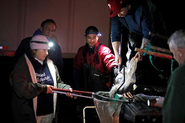 The elvers are caught with nets in Maine’s cold rivers and streams, often in the dead of night in frigid conditions. The Maine Department of Marine Resources added a requirement this year that elver exporters in the state must notify the Maine Marine Patrol 48 hours before preparing to pack and ship the eels. The officer is assigned to witness the weighing and packing of the elvers, and mark the package with a seal that must remain intact with until the eels reach their destination.