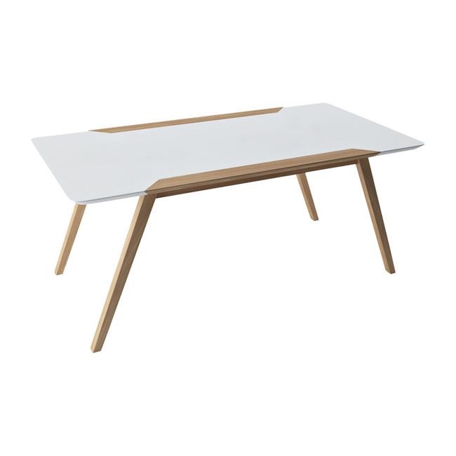 Lumisource’s matte black Austin dining chairs also have an industrial vibe, and would complement a rustic farm table. Or you could pair them with a dining table with midcentury panache, like the Aeon, a satin-finished ash slab on matte, powder-coated steel legs. (www.wayfair.com )