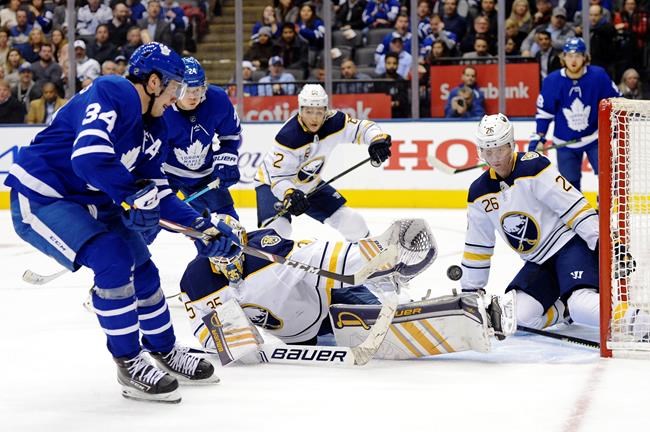 Auston Matthews scored twice as Toronto dominated early before having to hang on late in Tuesday’s 5-3 victory over the Buffalo Sabres.