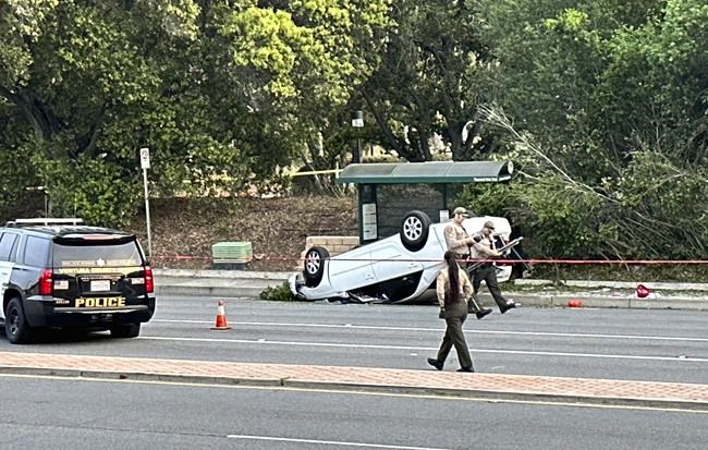 THOUSAND OAKS, Calif. (AP) — One Southern California teenager was killed and three others injured Tuesday afternoon when a stabbing suspect crashed his vehicle into the group as they were walking near their high school, authorities said.