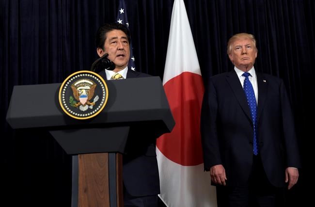In a ballroom at Trump’s south Florida estate, Abe read a brief statement in which he called on the North to comply fully with relevant U.N. Security Council resolutions. He said Trump has assured him of U.S. support and that Trump’s presence showed the president’s determination and commitment.