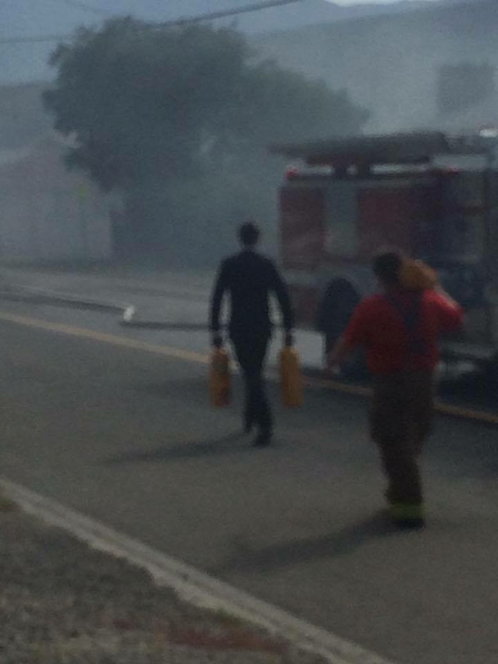 While he didn’t suit up in his regular firefighter gear and battle the blaze directly, Roden says he was able to help out his crew by taking empty oxygen bottles back to the fire hall in his car to have them refilled, according to a Facebook post.