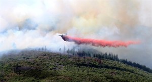 Along with 94 firefighters on the ground, Wildfire Management has nine helicopters flying missions over the blaze dropping water or fire retardant from buckets hanging below the choppers.