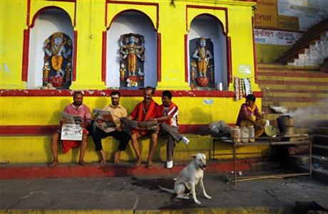 Continuing his victory lap, Modi headed later Saturday to Varanasi, the town on the banks of the Ganges river that is revered by millions of devout Hindus. An elaborately decorated platform was built for him to offer prayers on the banks of the river. Saffron flags fluttered above the flower-bedecked platform, and thousands of supporters and onlookers milled around to watch as Hindu priests chanted sacred verses and burned incense.