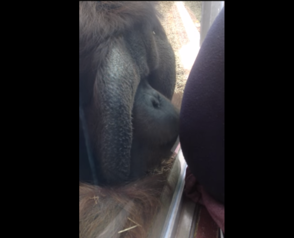 A woman pressed her pregnant belly against the glass at an exhibit and got a special surprise from Rajan the orangutan.