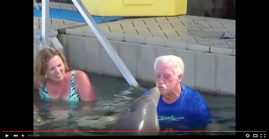What started as a traditional Bermuda tourist activity, swimming with a dolphin, quickly escalated into a full on spitting war.