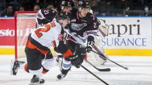 The Warriors put them on their heels for the next 10 minutes, scoring twice as Jonathan Desbiens beat Storm Phaneuf off a rebound, before Kylar Hope outlasted Phaneuf and tucked one home with Phaneuf sprawling.