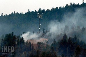 She was sitting with her dog on the steps outside the makeshift evacuation centre at Mount Boucherie Secondary when approached for an interview. She has a clear view of the fire scene; the thick smudge of smoke and the hovering aircrafts.