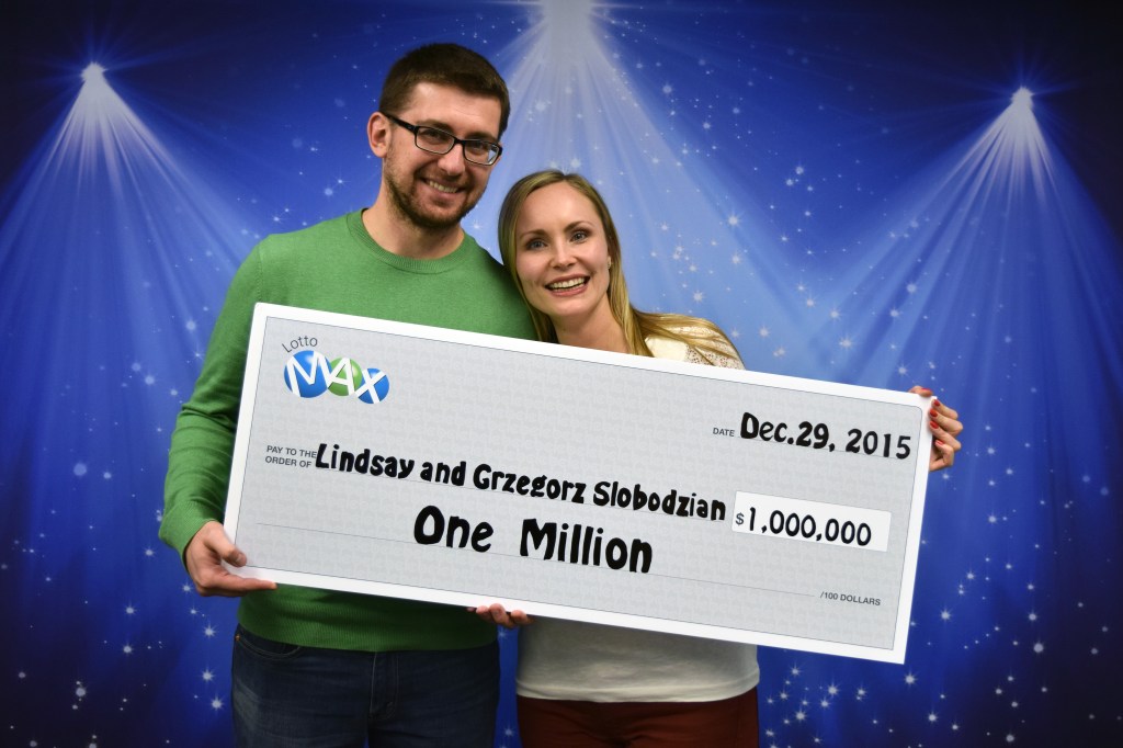 Lindsay Slobodzian and Grzegroz Slobodzian checked their lottery ticket while Boxing Day shopping, Dec. 26, just an hour before hosting a family get together, and found out they won one of Lotto Max's million dollar prizes from the $60-million draw.