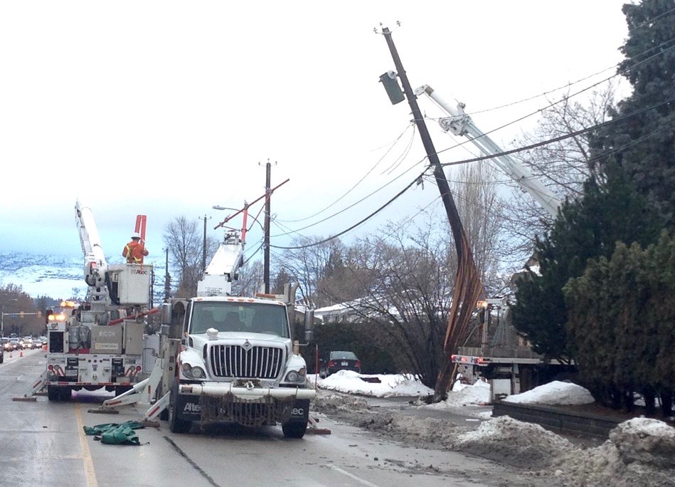 The crash knocked out power in the area, which was restored by 1:30 p.m., according to Fortis B.C.