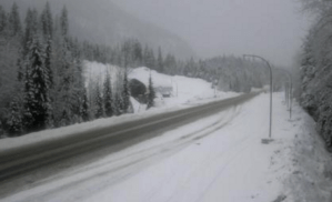 Drive B.C. is reporting limited visibility with heavy snowfall along the Trans-Canada Highway from Craigellachie to the west boundary of Glacier National Park along with water pooling west of Revelstoke.