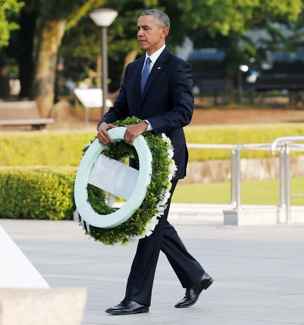 Obama is commenting after he became the first sitting U.S. president to visit Hiroshima. He laid a wreath near the base of the memorial.