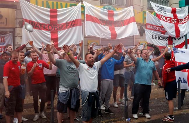 SAINT-ETIENNE, France – Hundreds of England fans pierced the tranquility of Saint-Etienne on Sunday, a day before their team’s European Championship game against Slovakia.