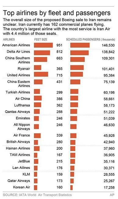 The overall size of the proposed Boeing sale to Iran, however, remains unclear. Ali Abedzadeh, the head of Iran’s Civil Aviation Organization, was quoted Sunday by the state-run IRAN newspaper as saying the sale would involve 100 Boeing aircraft, something the manufacturer has declined to discuss.