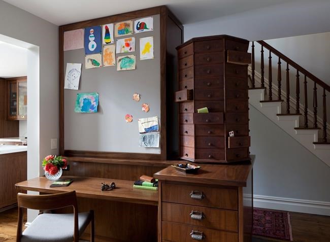If the walls are already full, try hanging a length of twine and use clothespins to hang a rotating selection of school artwork.