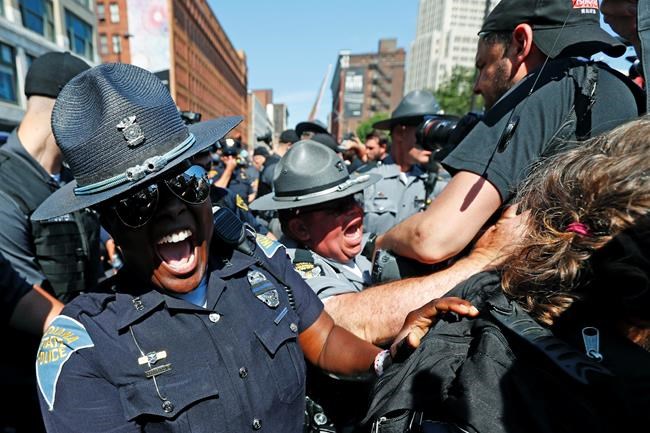 Police say 17 people have been arrested during a chaotic protest outside the arena housing the Republican National Convention.
