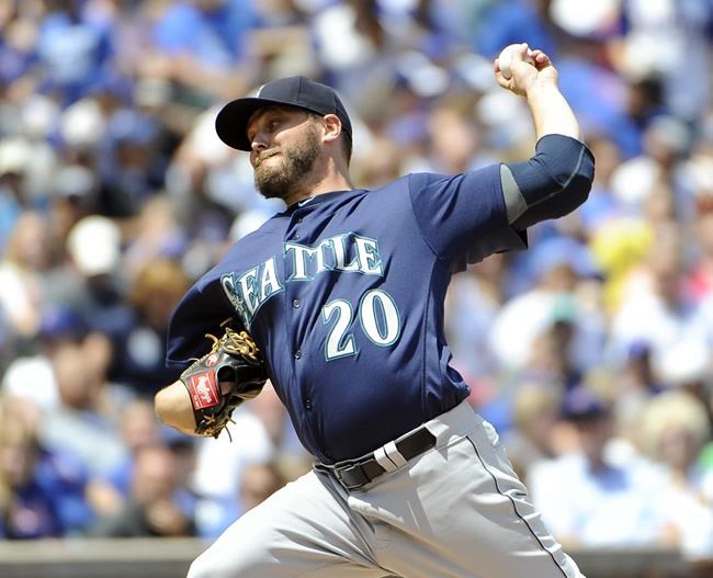 CHICAGO – Kris Bryant singled sharply to left field with no outs in the seventh inning Saturday for the Chicago Cubs’ first hit off the Seattle Mariners’ Wade Miley.